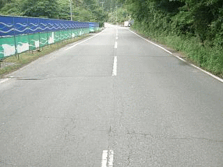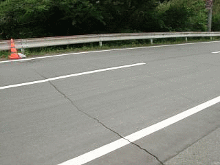 県道湯の岳別所線(371号線)斑堂の亀裂 何箇所かに亀裂が生じています。6月14日撮影