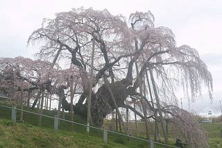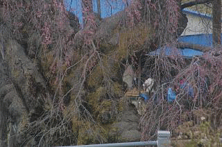 朝のニュースで三春の滝桜の様子が紹介され、地震・原発等で見にきている観光客が少ないといっていました。思い切っていって来ました。昨日降った雪が、日陰に少し残っていました。気温が昨日から下がり、日中で5度台でした。地震の影響で、道路も陥没個所や起伏ができていました。幾分応急処置がされていました。滝桜を見ていた観光客の一人は、浪江の夜ノ森の桜並木は、今どうなっているのだろ。と心配していました。