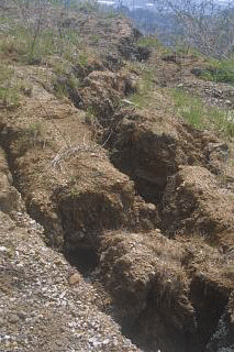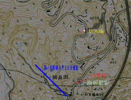 「湯ノ岳断層」の一部であろうと思われます。湯ノ岳に沿うように、断層が走っています。