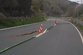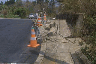 学校の下をはしる県道71号線も塩ノ平断層によって1メートルの段差ができていました。すでに補修が済んでいました。
