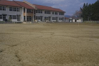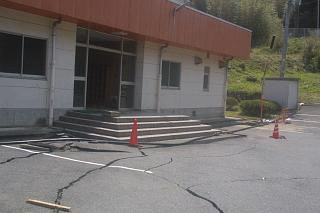 田人中学校も大きな被害がおきました。体育館の下を塩ノ平断層が走り、使えない状態です。
