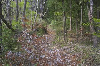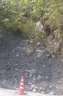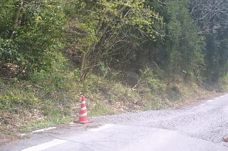 断層の上に生えていた山桜は、けなげにもその花を咲かせていました。林道は、整備されこの山桜も切られてしまうと、厭うしく思い、記念に写真に納めました。