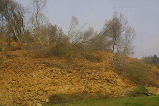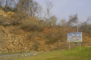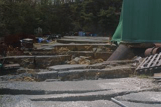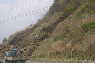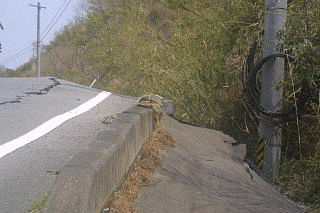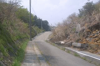 御斉所街道の常磐藤原町仲江地区の崩落現場(4月27日撮影)